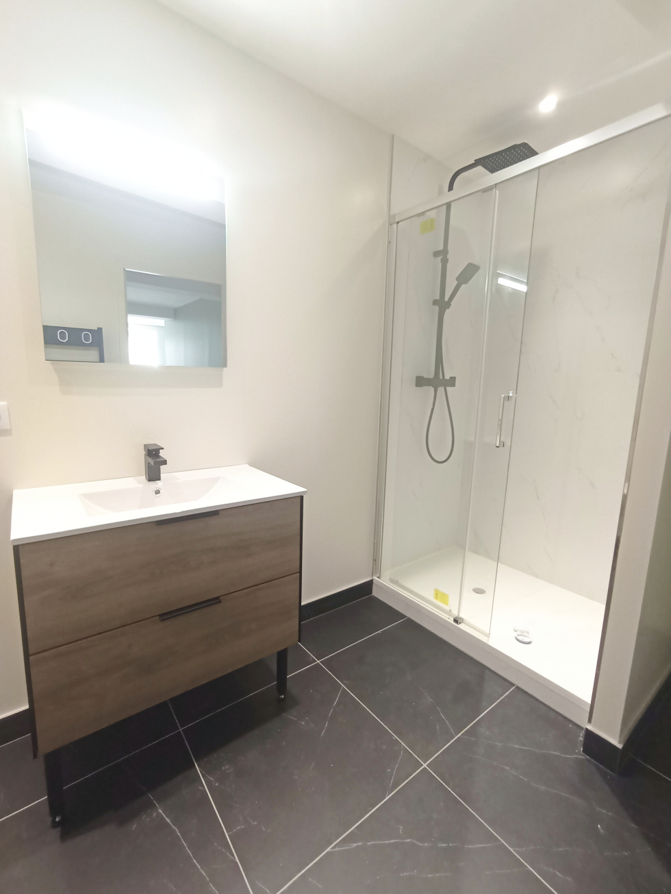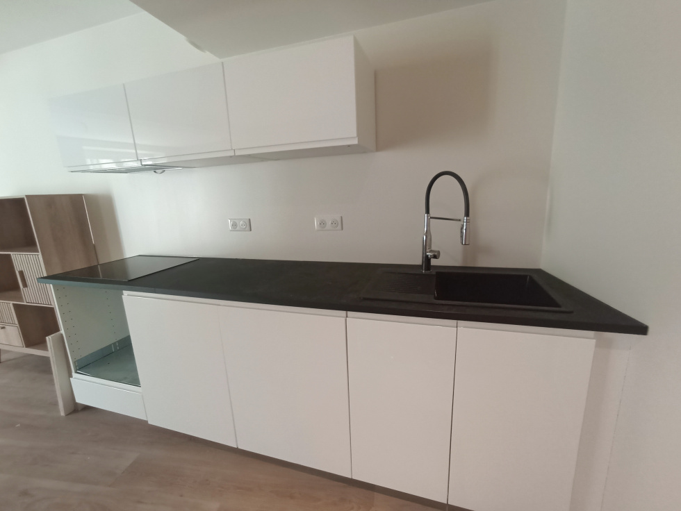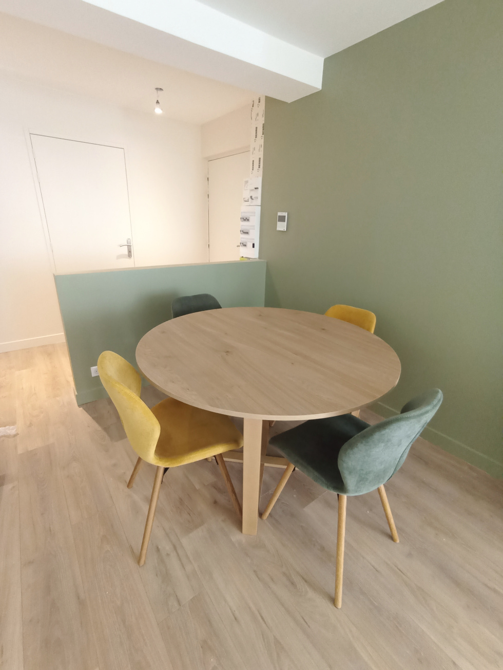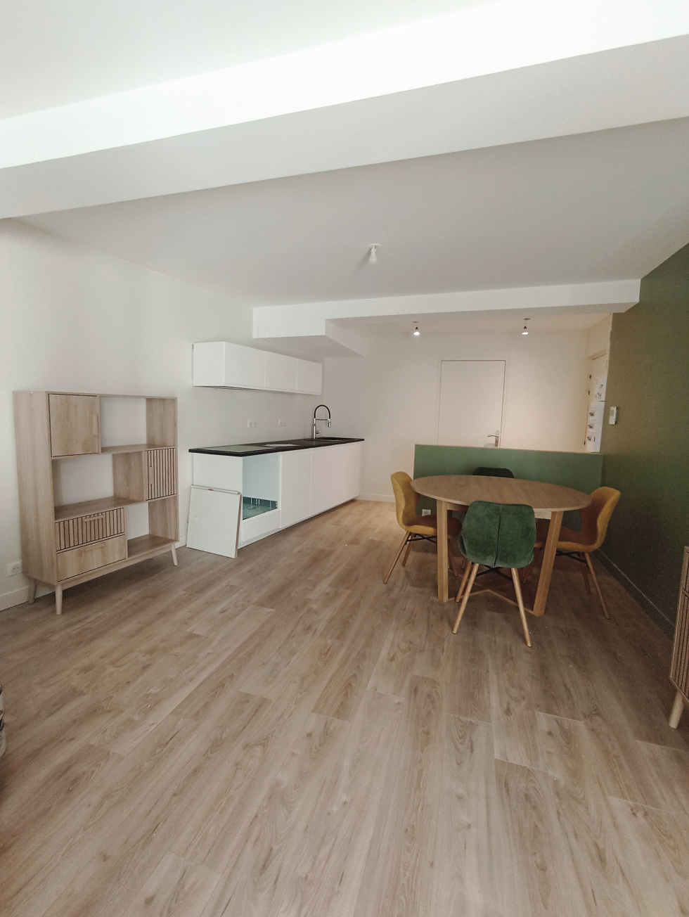Une entrée spacieuse, une cuisine semi équipée, un grand séjour avec salle à manger, une chambre, une salle d'eau ainsi qu'un WC.