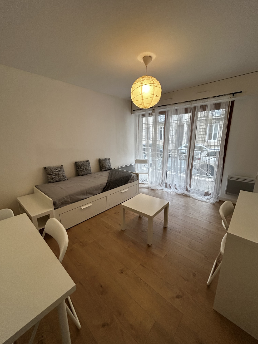 Rue Alzon dans une rue à sens unique, quartier Judaique, à 10 minutes de la place GAMBETTA, au sein d'une résidence sécurisée, en rez-de chaussée, appartement meublé de type une pièce de 24.33 m², comprenant : une entrée avec placard, une pièce à vivre lumineuse de 14.71 m², un coin cuisine semi-équipé (réfrigérateur avec partie congélateur, plaques de cuisson, micro-onde), une salle de bains avec WC. L'appartement bénéficie d'un ameublement neuf. L'appartement est disponible immédiatement. Loyer mensuel hors charge : 582.00€ Provisions charges mensuelles : 50.00€ Soit un loyer total charges comprises : 632.00€ Dêpot de garantie : 1164.00€ Honoraires de location, rédaction de bail, frais état des lieux : 316.29 € dont 72.99€ de frais d'état des lieux.