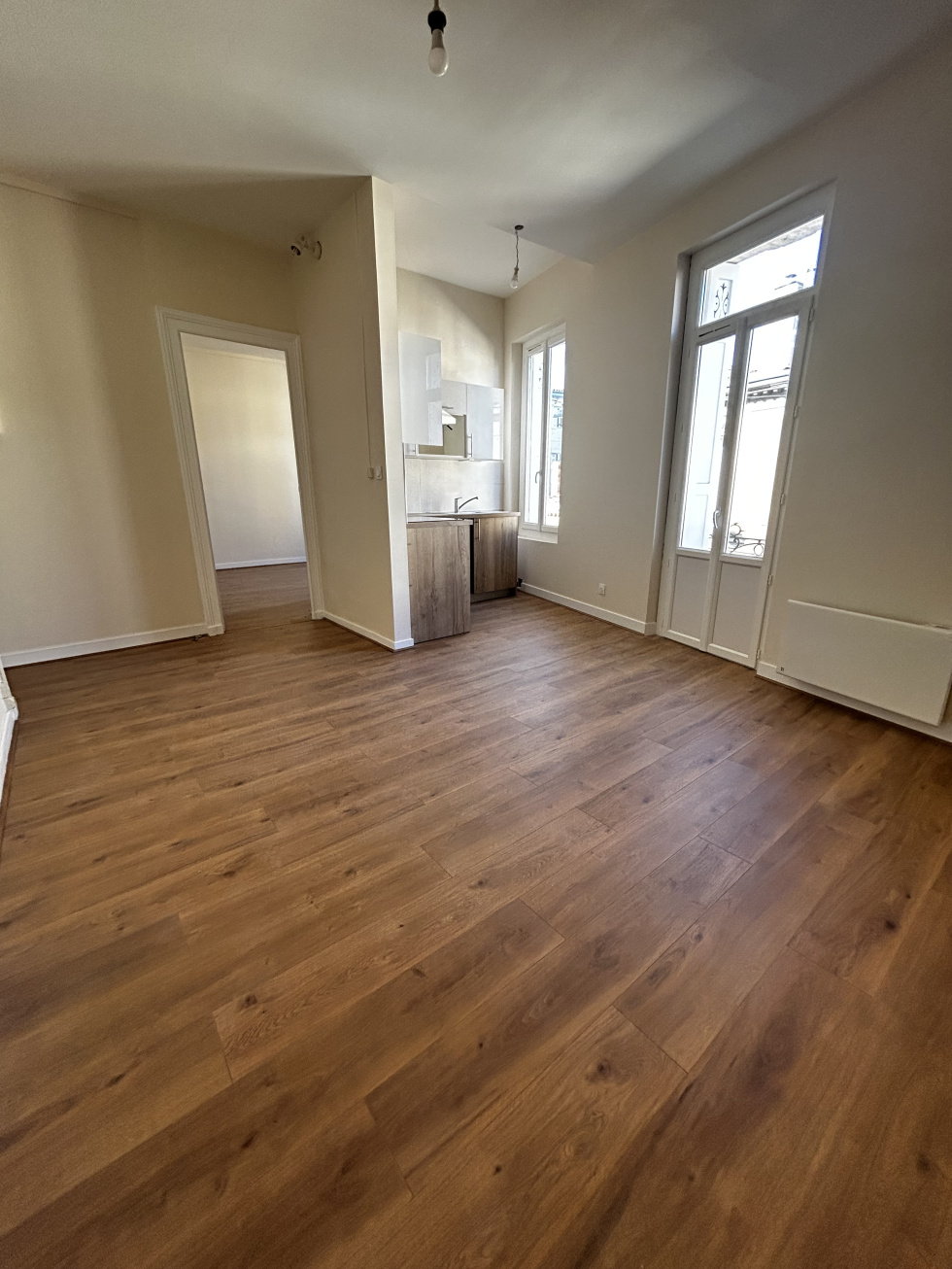 Quartier Saint Genès, Rue Clément, idéalement situé au calme et à deux pas de l'arrêt de tramway Saint Nicolas, Au premier et dernier étage d'un immeuble sécurisé, appartement de type T2 entièrement rénové. L'appartement se compose comme suit : une belle pièce à vivre lumineuse, un coin cuisine aménagé et semi équipé, une grande chambre avec placard, une salle d'eau avec un WC. Une grande cave vient compléter le bien. Loyer mensuel hors charge : 731,03€ Provision pour charges mensuelles : 45,00€ Loyer de la cave : 70,00€ Loyer charges comprises : 846,03€ Honoraires : rédaction bail, visite, constitution et étude de dossier : 516,49€ dont 119,19€ de frais d'état des lieux.